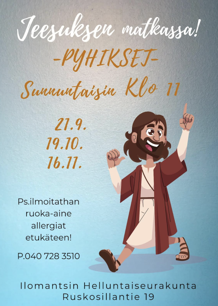 Lisätietoja pyhiksestä voit myös kysyä s.postitse Ninalta (nina.kaasalainen-palviainen@helluntaikirkko.fi).